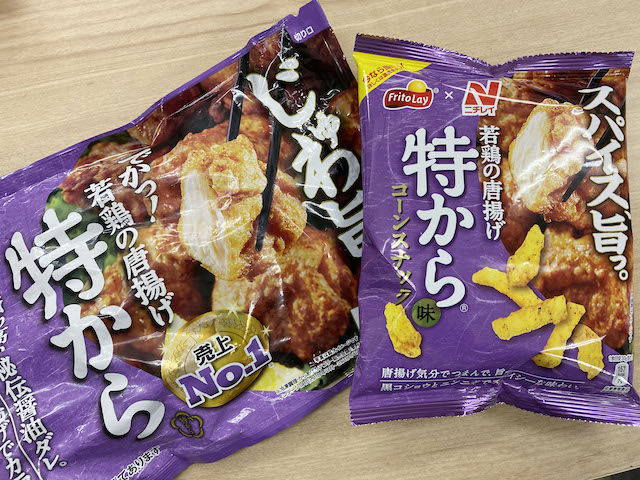 まず最初に発売されるのが、冷凍からあげ売上No.1の「特から®︎」とコーンスナックのコラボ。