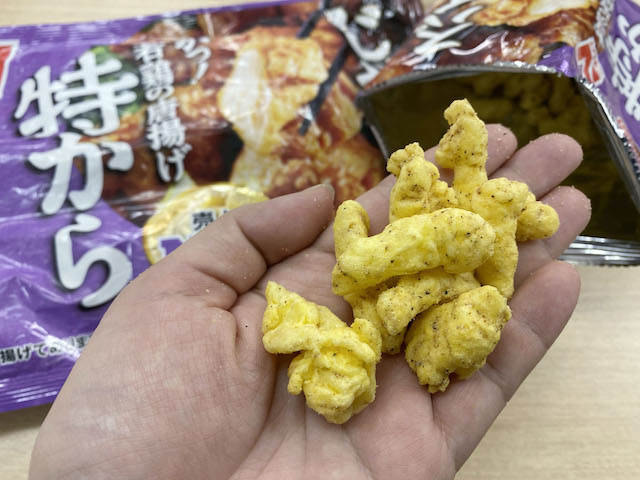 一度食べたらやみつきになるほど美味しい大きくてジューシーな唐揚げが、コーンスナックになるとどのような味わいになるのでしょうか!?筆者が一足お先に食べてみました。