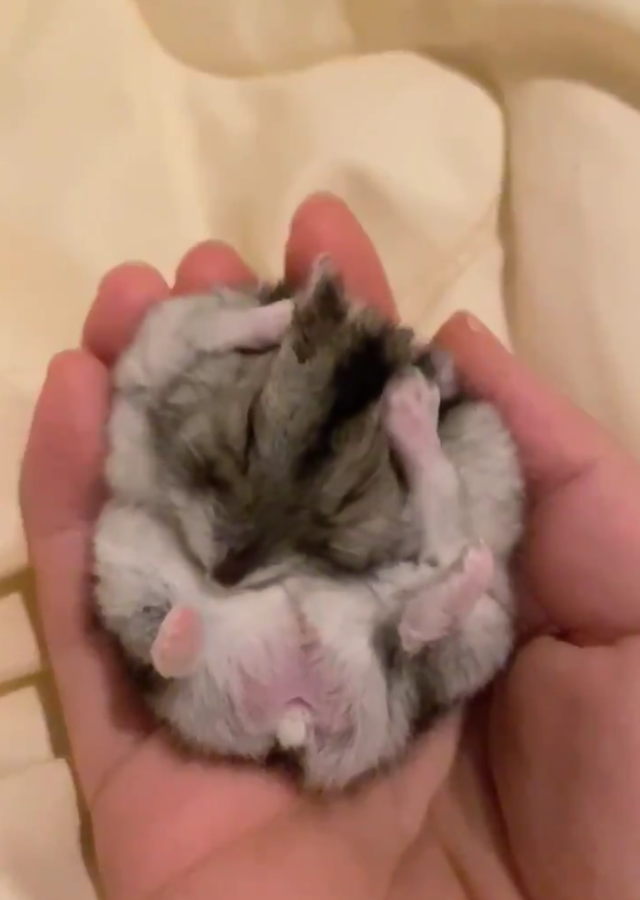 ハムスターが毛繕いする時などに手で顔や頭をくしゅくしゅっとする、あの可愛い仕草のスローモーション動画が話題になっています!