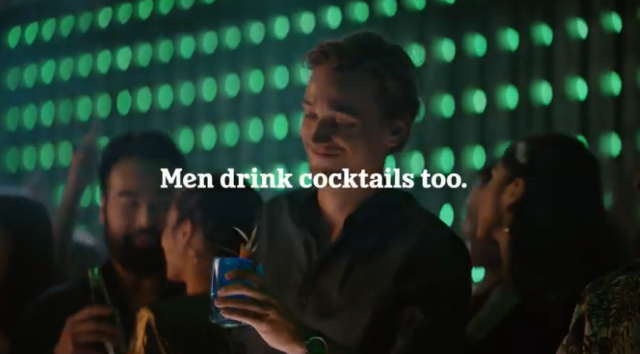 注文した男性のもとへ。そして画面には"男だってカクテルを飲む"の文字が現れました。