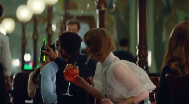 今度はウェイターさんが女性に飲み物を差し出すシーンです。