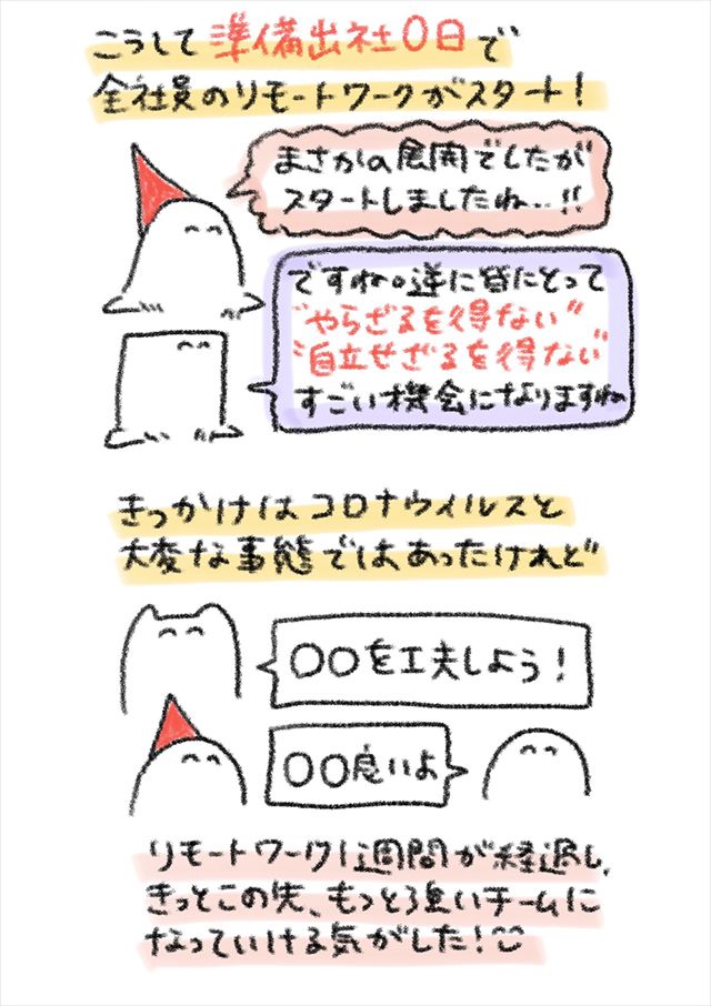 きっかけは何であれ、リモートワークで実際に稼働できるこをを知ることができたのは、とても有意義なことだと思います。