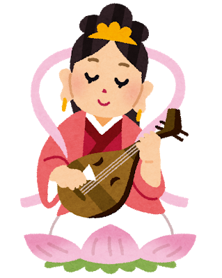 七福神の中で唯一の女神が弁才天です。琵琶を持つその姿から音楽など芸事の神とされます。