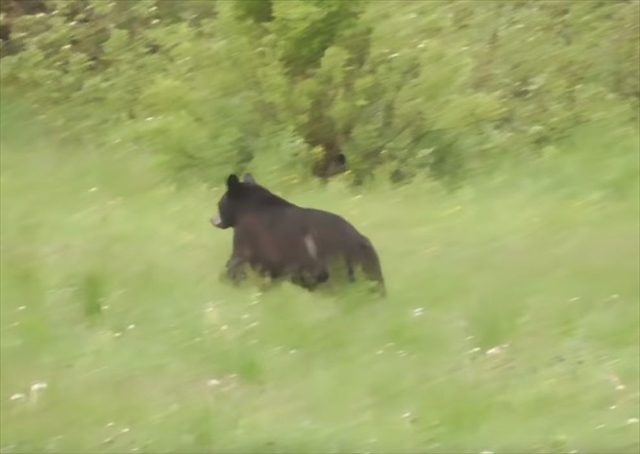 分泌液がクマの顔めがけて噴射されているのは分かりますでしょうか!?これには、あまりにも臭かったのか、さすがのクマもあわてて退散!!
