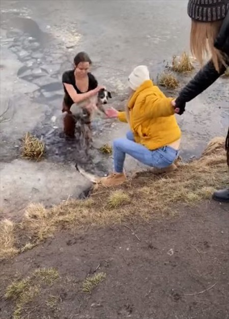 コートやダウンジャケットなどを着たままでは水を含んで体が重くなってしまいますよね。この極寒の中ですが、できるかぎり身軽にして救助に向かった飼い主さんの必死さが伝わってきます。