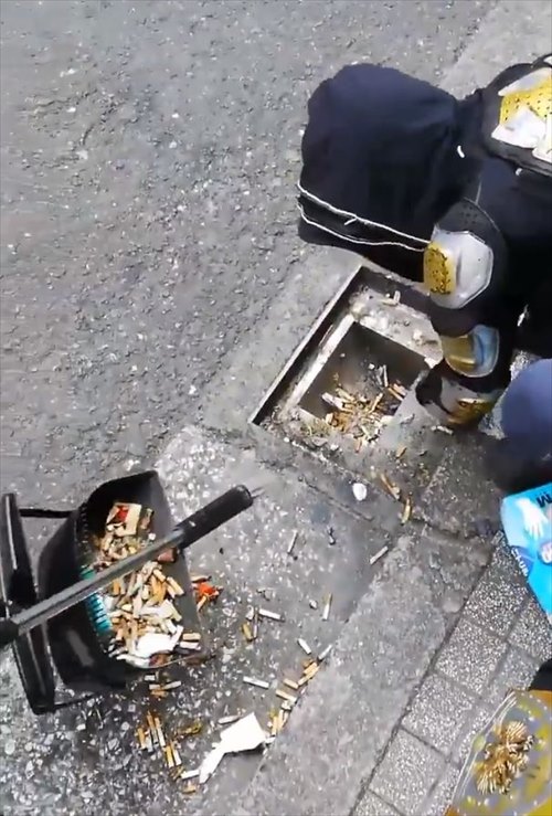 排水溝の中を清掃する動画がTwitterで反響を呼んでいますが、排水溝の中には驚くべきほどの吸い殻がたまっていたのです・・・。