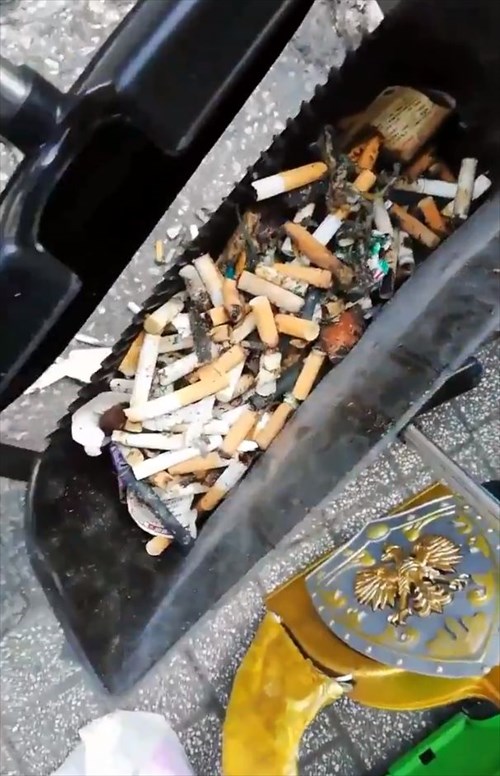 ちりとりに吸い殻を集めていきますが、あっという間にいっぱいに・・・。