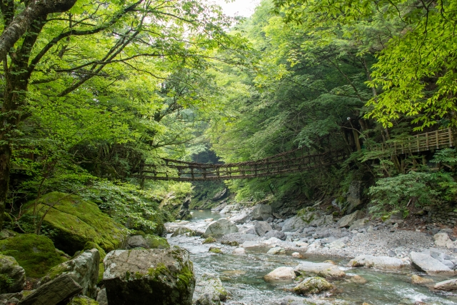 祖谷周辺には奇橋として知られるかずら橋があります。そのかずら橋はサルナシなどの植物を使った作られた原始的な吊り橋であり、古き良き日本の文化を感じさせる橋です。