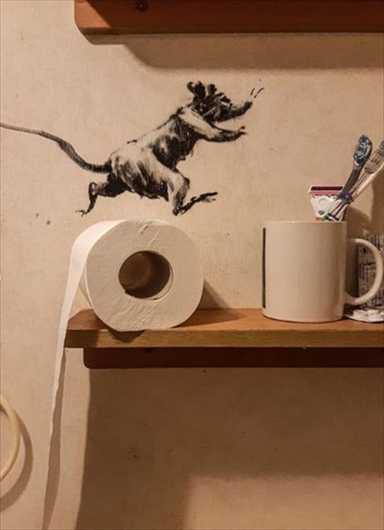 トイレに描かれたネズミの絵はこのままなのか気になるところですが、バンクシーのことなので家の他の場所にも色々と描いていきそうですね。