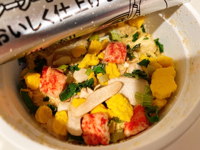 そしていつものようにお湯を注いで、待つこと3分。