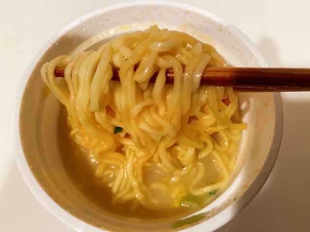 まずは「MARUCHAN QTTA SEAFOODラーメン カニカマ増量」を実食!!