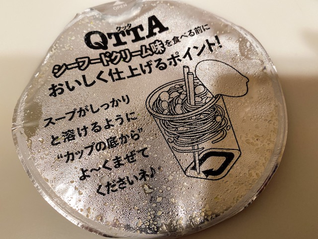 さぁ、お次はいよいよ「MARUCHAN QTTA 裏 シーフードクリーム味」の登場です!この反転されたデザインが裏メニュー感を醸し出していて良いですね。