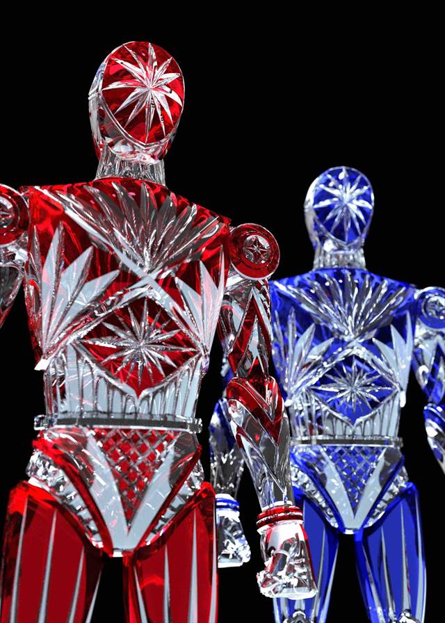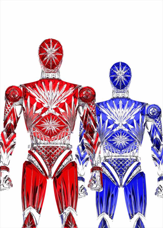 そんな江戸切子の鮮やかな美しさをそのまま反映した赤と青のヒーロー。体全体からヒーロー感が溢れ出ていますよね(笑) ただ、ガラスゆえに壊れそうなのが気がかりです。