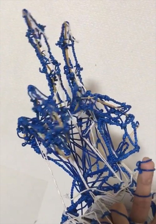 これを製作するための素材は、百均の針金16mが2パックのほか、百均のタコ糸、家にあった輪ゴムだそうです。製作期間は8日程度とのこと。思いつきでこういうものを作ってしまうのは凄いですよね。