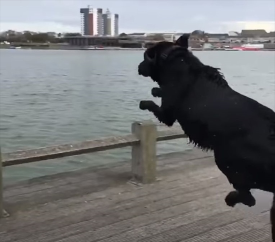 今回ご紹介するのは、嬉しそうに海に向かって走って行って飛び込むワンコ。軽快な助走から見事なダイブを見せたと思いきや、予想外の惨事が待っていました・・・(笑)