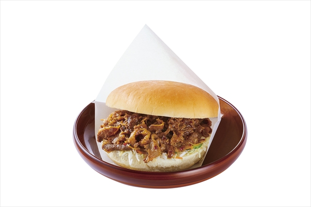 「コメ牛」は、甘辛の特製タレをしっかり絡めた牛カルビ肉と食感の良い千切りキャベツを自社製バンズでサンドしたバーガー。