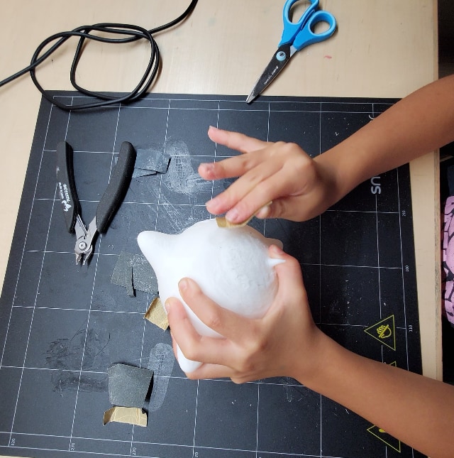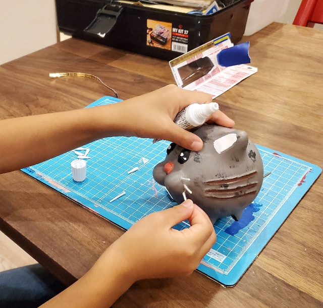 ヤスリで磨いたり、色塗ったり、ヒゲを接着剤でつけたり。なかなか大変そうでしたが楽しく頑張ってました。 pic.twitter.com/pwFMbj9FZk