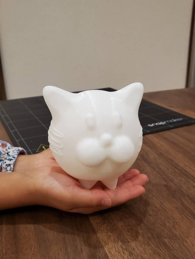 Youtubeの動画で「Zbrush(Core mini)」という3DCGソフトウェアの使い方を学び、実際にソフトを使って猫ちゃんをデザインした娘さん。それを3Dプリンターで出力し・・・