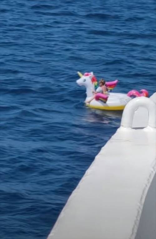 出典: YouTube(Ferry Boat Rescues a Young Girl on Inflatable Unicorn)