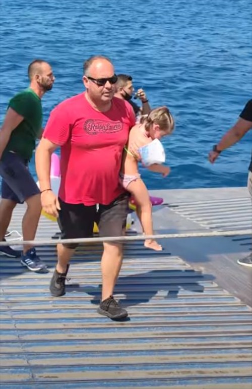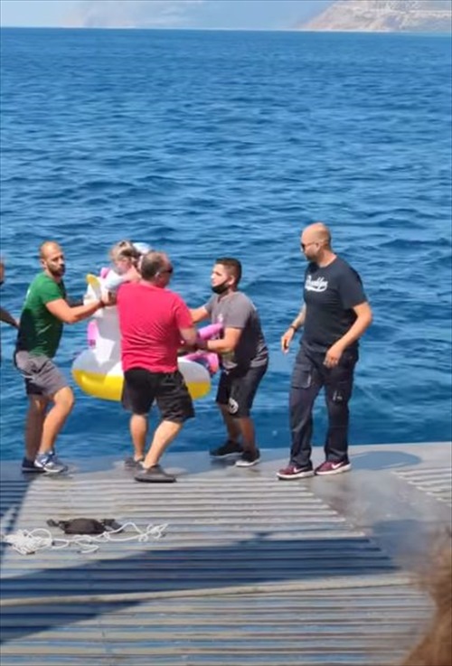 その出来事が発生したのは、ギリシャのリオパトラス。家族で同地の海に遊びに来ていたという5歳の娘が、両親が目を離した隙に浮き輪に乗った状態で沖に流されてしまったのです。
