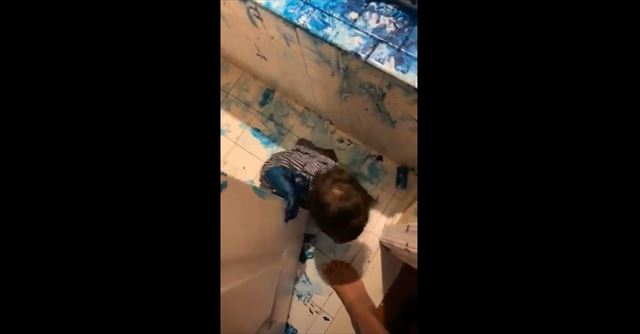 ママが洗面所に行った5分、帰ってきたらもう大惨事に。。。