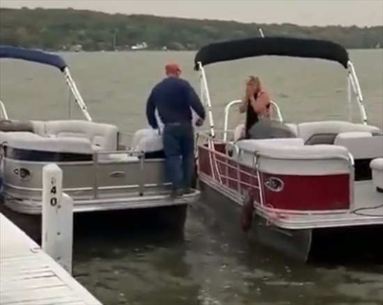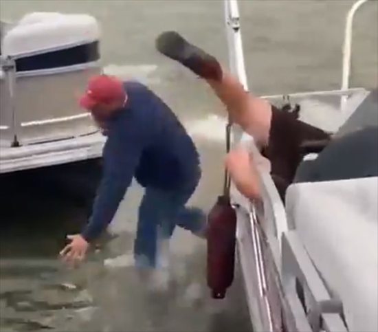 顔面を蹴られた男性は海に転落!感動のプロポーズはつかの間でした・・・。それにしても、なんという絵面でしょうか。