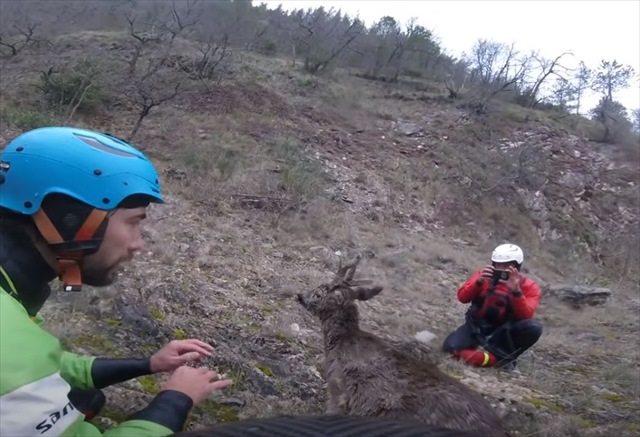場所はイタリア・サンマリノ付近のカンディリアーノ川。カヤックを楽しんでいた男性が、目の前で溺死してしまいそうなシカを発見します。