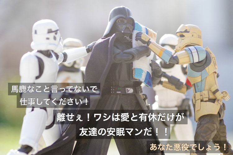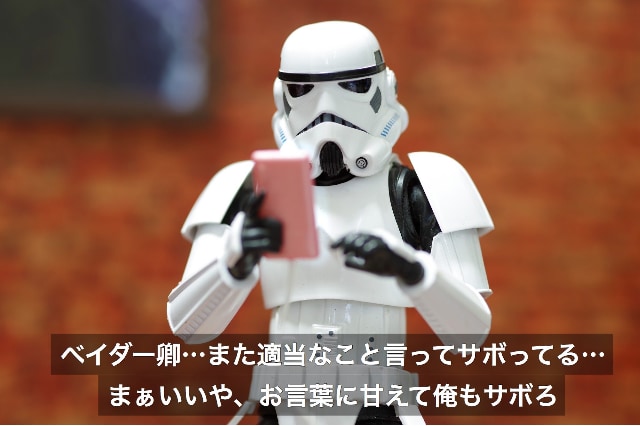 作中でも部下が「また適当なこと言ってサボってる・・・」なんて言っていますし、どういうことなのか気になりますよね。その答えは、ねぎかつセブンさんの作品に登場するベイダー卿の普段の様子を見れば分かります。