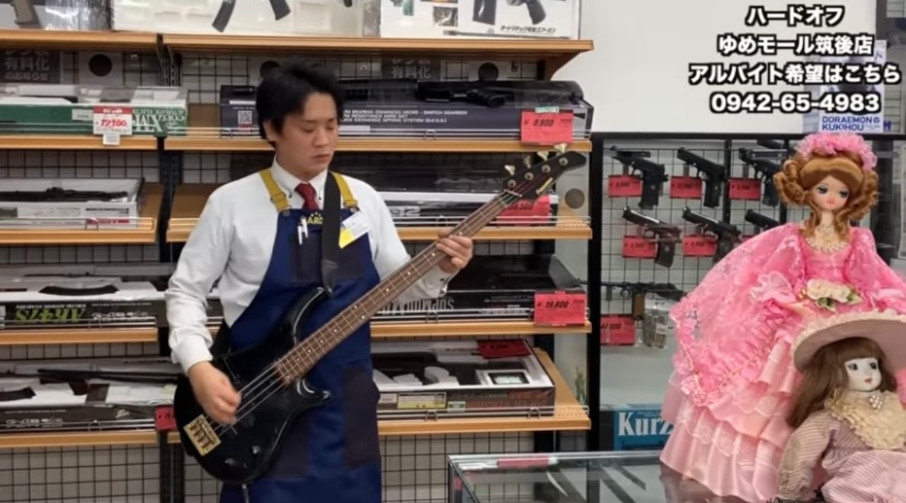 ご紹介するのは、「ハードオフ筑後店ハードオフ久留米国分店」の名前で運営されているYoutubeチャンネルの「ハードオフ店員が壊れた楽器(ジャンク品)で〇〇の〇〇を演奏」というシリーズ。