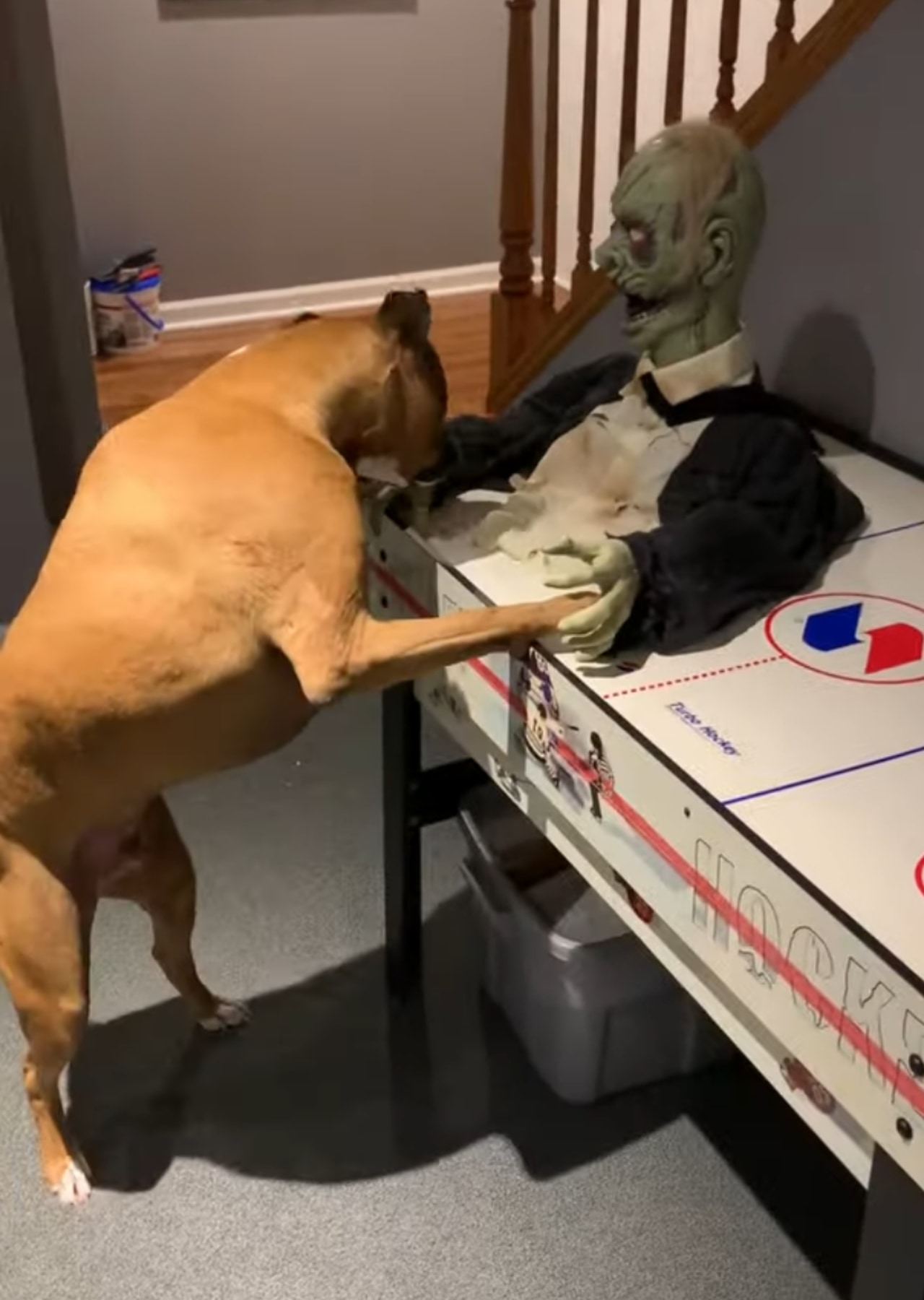 米イリノイ州グレイズレイクに住む6歳のボクサー犬「ムース」は、ボクシング選手さながらの必殺パンチでハロウィンゾンビを撃退したのです!