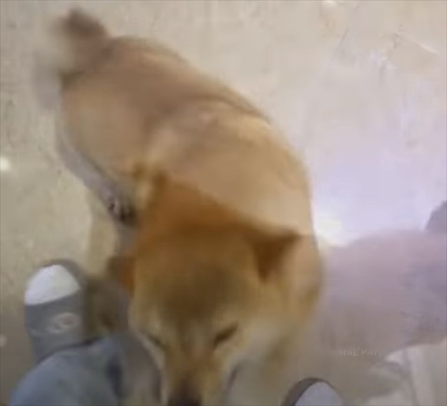 こちらがその柴犬。飼い主さんの足下で興奮している様子。めちゃめちゃ幸せそうですよね!