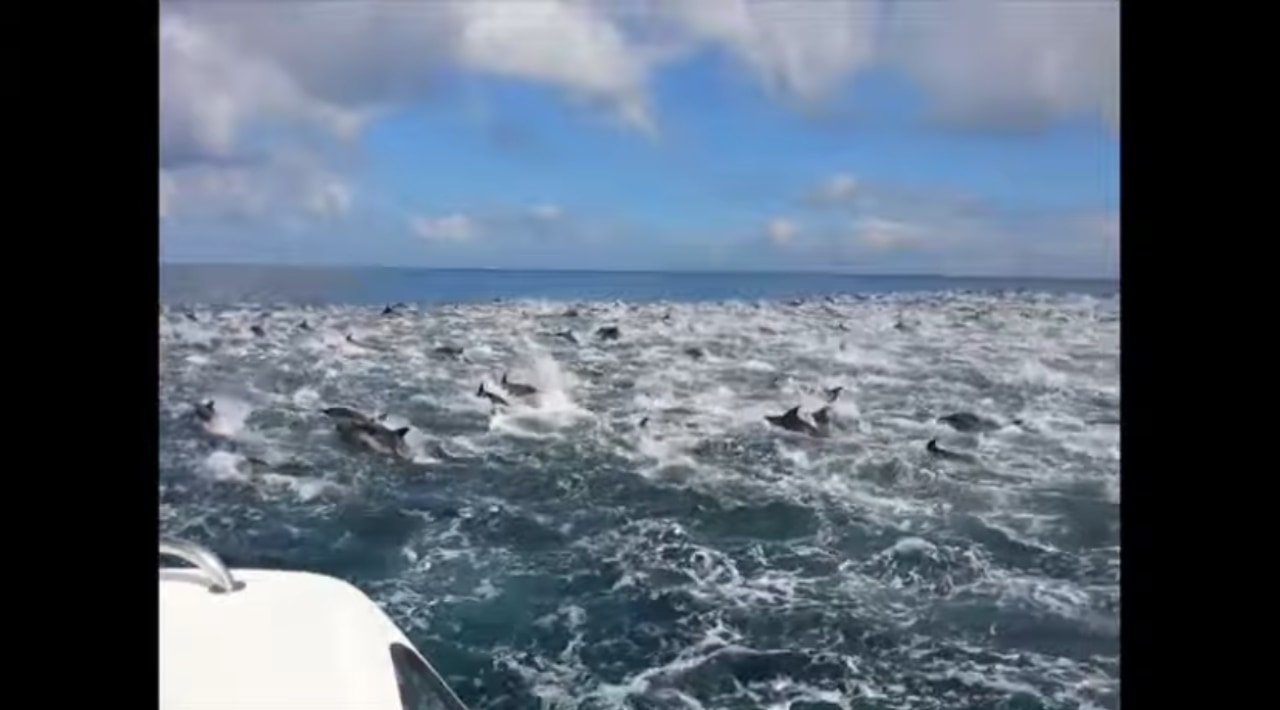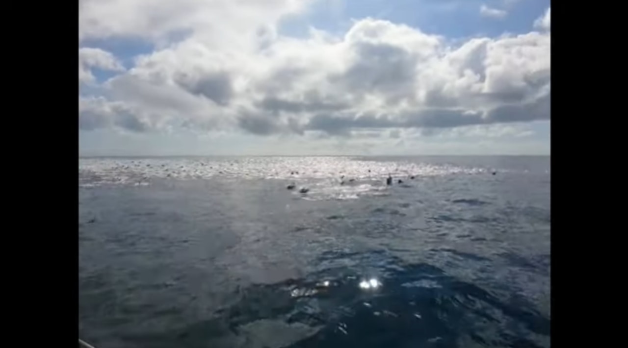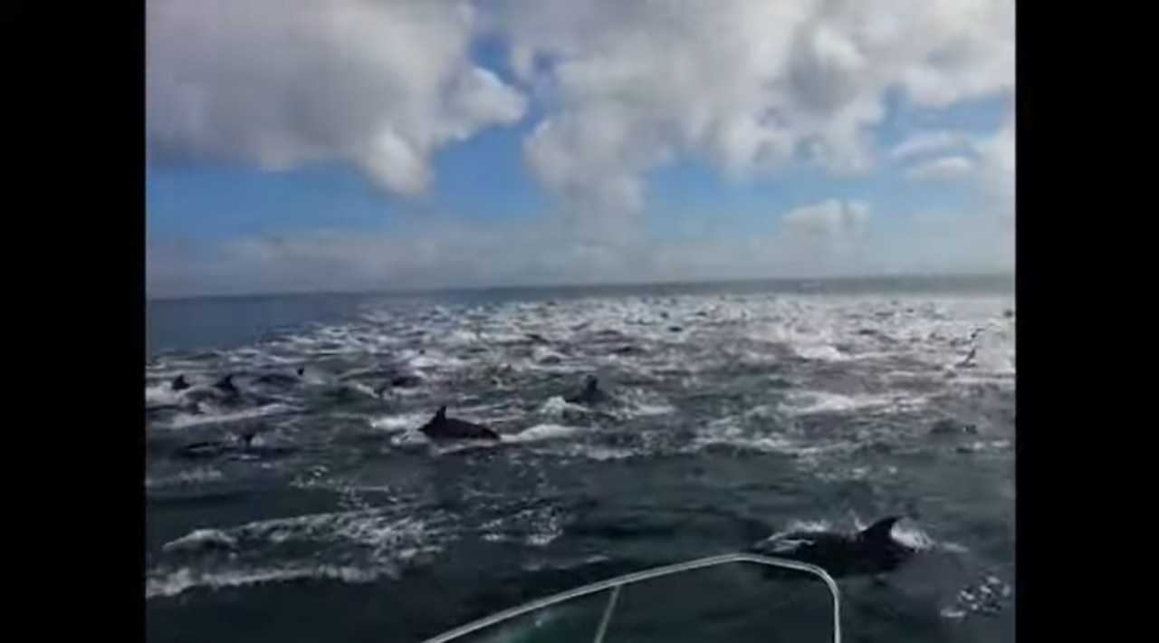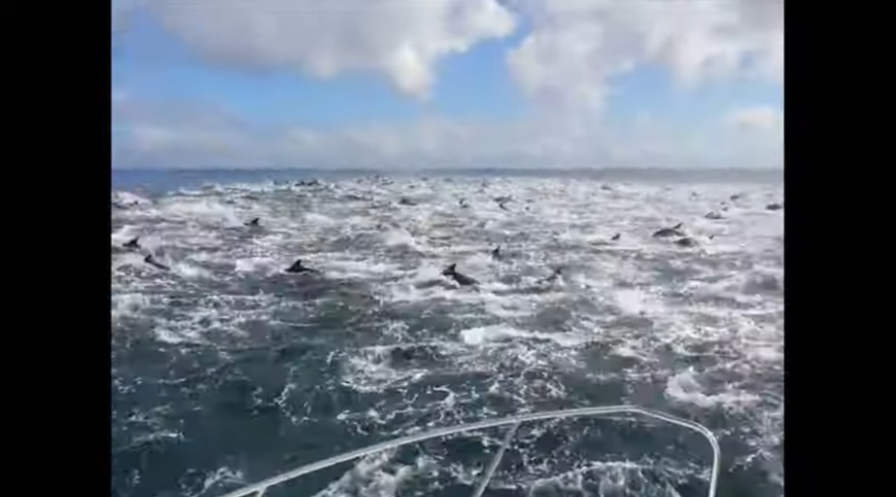 南アフリカ・ストロイスバーイで開催された深海釣りツアーの参加者は、ラッキーなことに船から野生のイルカを目撃。しかも、信じられないほどの超大群だったのです。