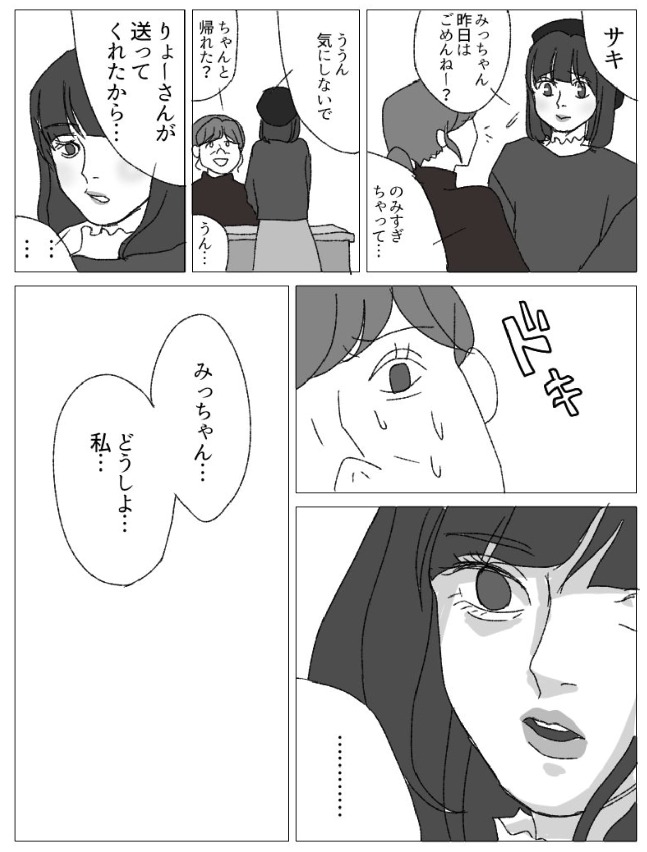 筆者は「今すぐサキから離れて~!」と思ってしまいましたが(笑)、そうしないのがミツの優しいところであり、ミツが感じる”かわいい”の力なんでしょうね。