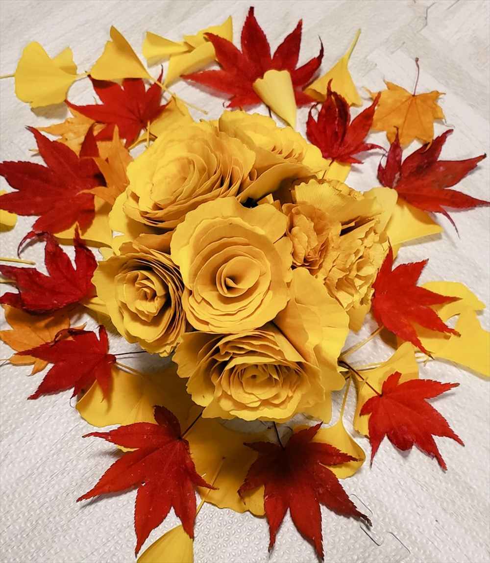 今回話題となっているのは、イチョウの葉っぱを丸めて作ったという素敵なバラです!