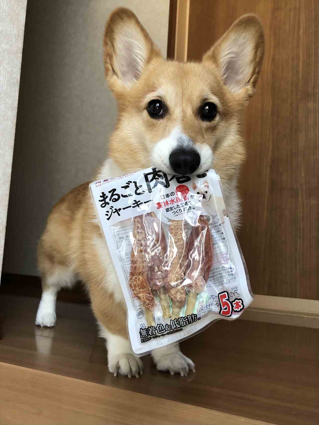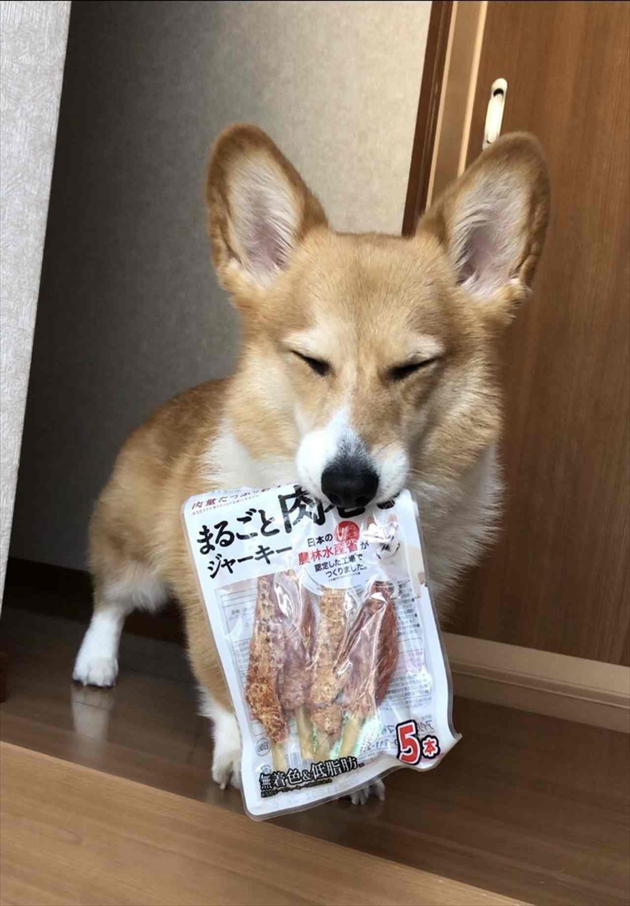 袋破いて食べちゃわないの、偉いです…うちのコーギーは前に、父親のリュックに入ってたコンビニのおにぎり2個食べました…海苔だけ残ってました……
