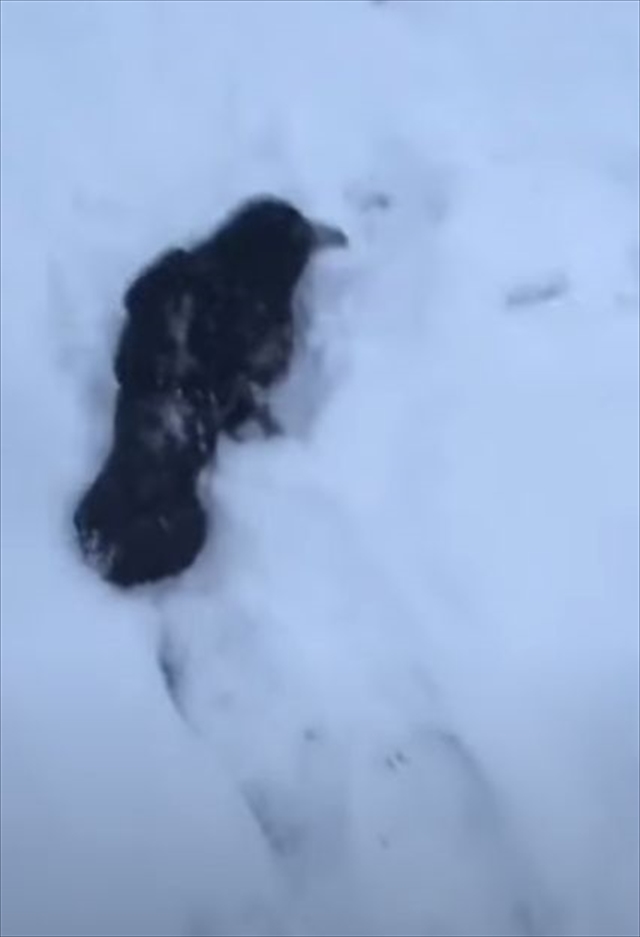 今回は、まるで人間の子供のように雪の中で遊んでいるカラスの様子をご紹介します!