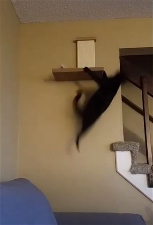 こちらがその時の一部始終を撮影した動画です。身体能力に優れたニャンコらしからぬ失態であり、衝撃的な瞬間をとらえていますので、ぜひご覧ください!
