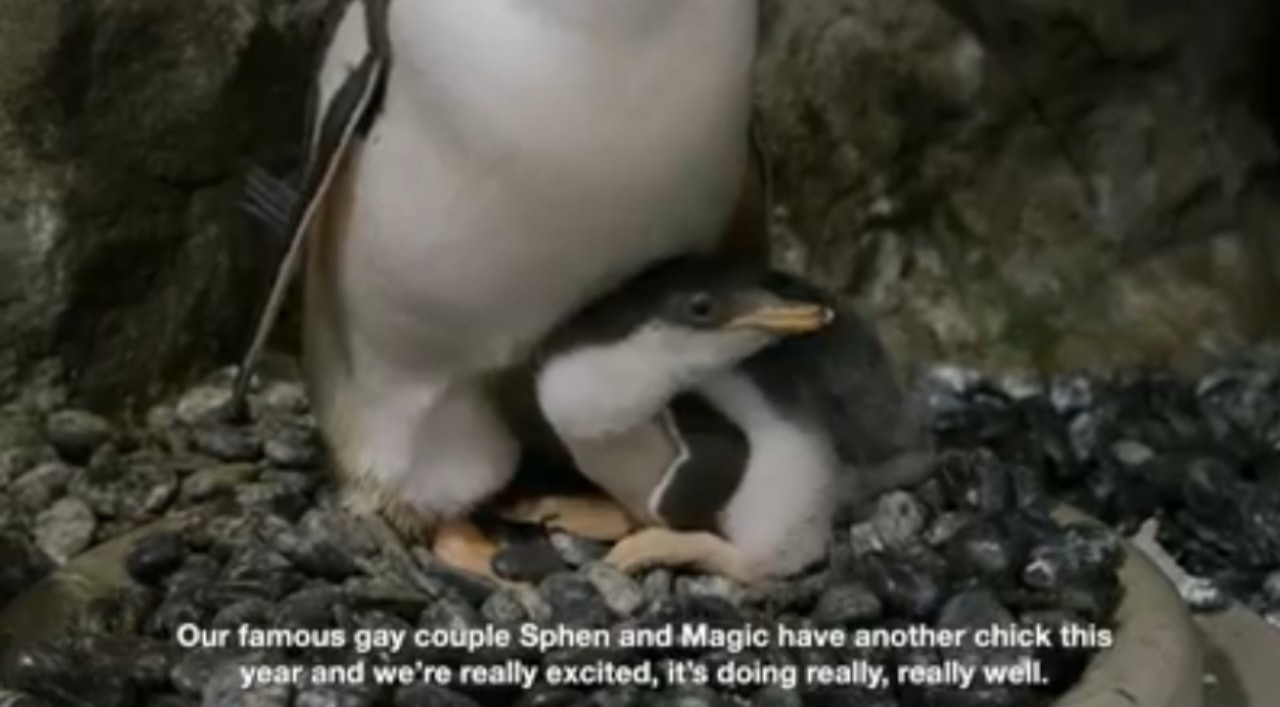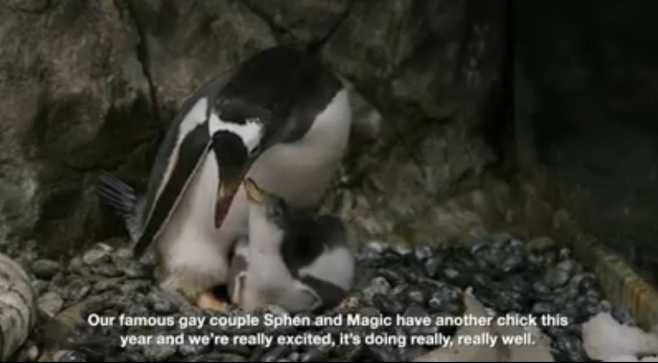 こちらの水族館で暮らすジャンツーペンギンのオス同士のカップル、「スフェン」と「マジック」が里親として2度目のヒナの孵化に成功したのです。