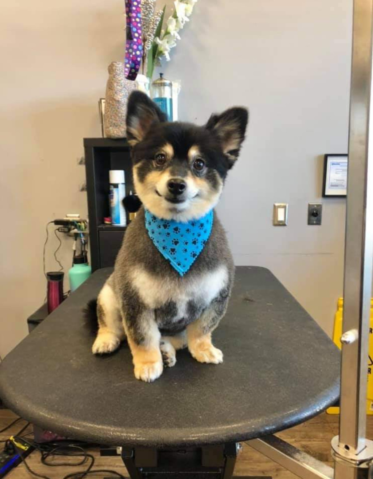 カメラを向けられてニッコリ微笑むワンコ