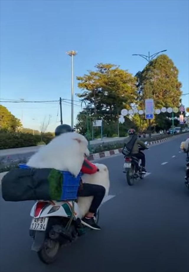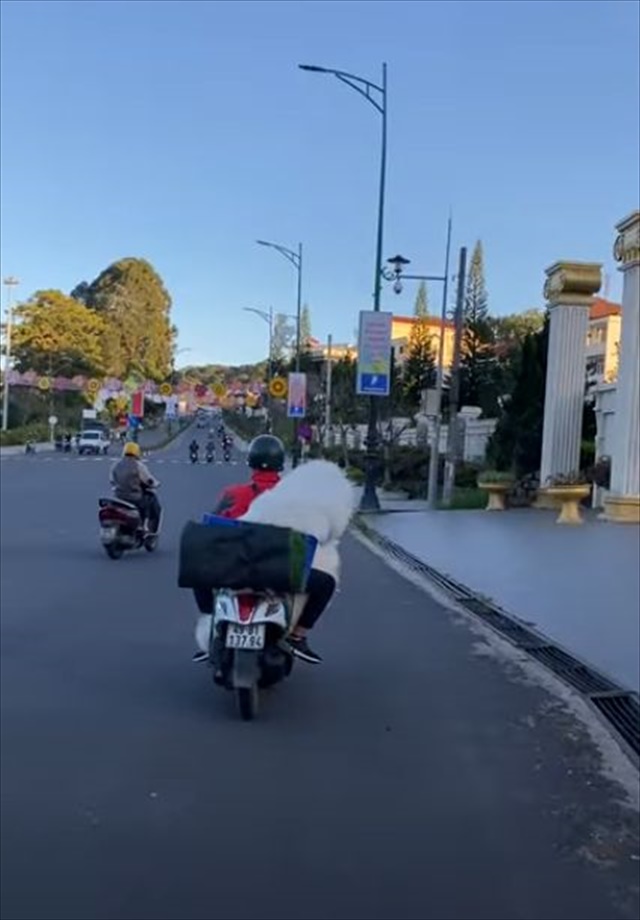 場所はベトナムのラムドン。道路を走行していると、目の前のバイクが白いフワフワしたものを運んでいました。