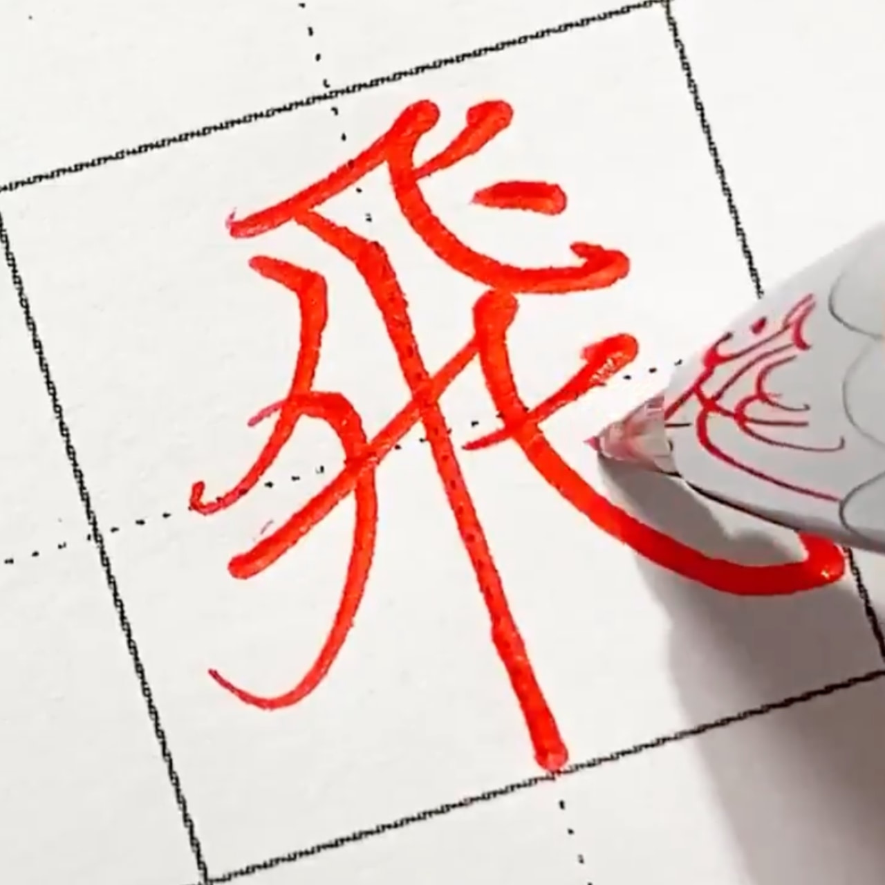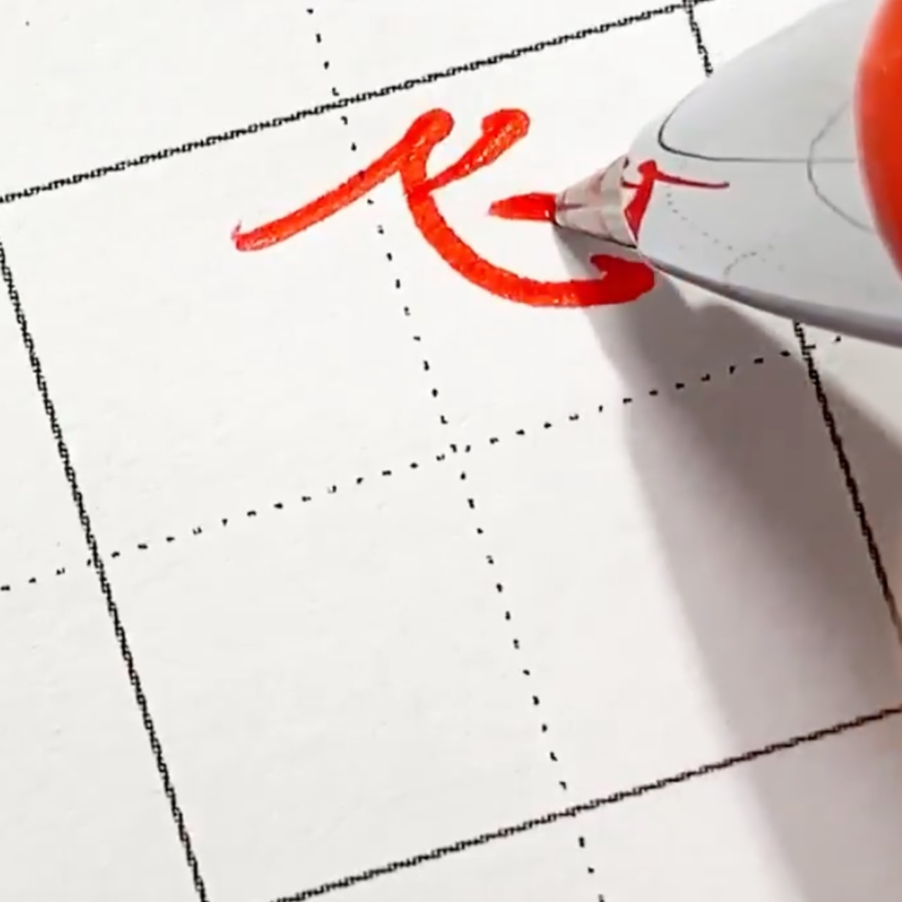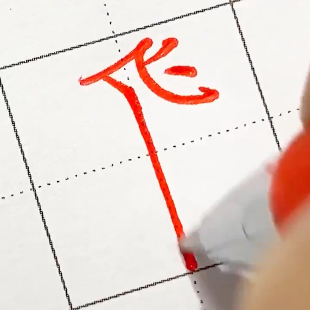 一画目の入りからもう凄い!斜め下にグッと線を引いてはねる様子は、まるで助走をつけて飛んでいく動きのようです。