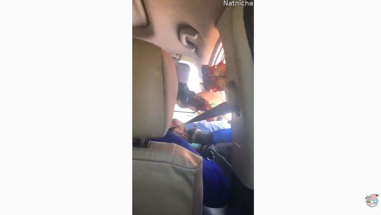 衝撃的なのはグリルチキンを社内にどうにかいれようと強引に割り込む女性もいる為、車の外側や内装にチキンが触れてしまったりしていること。