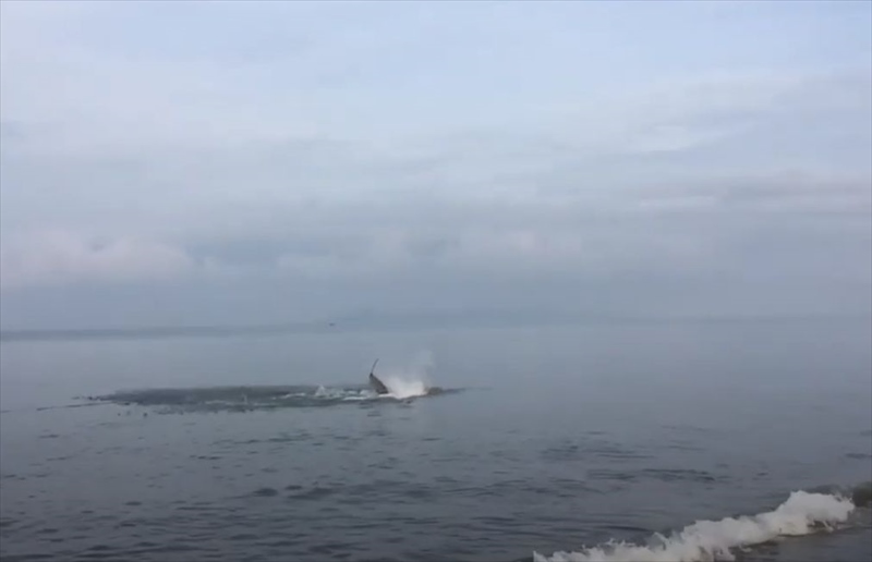 その後、深いところまで移動させることに成功し、イルカは無事に泳いでいきました。「ありがとう」とお礼をするように尻尾を振りながら去っていきました。