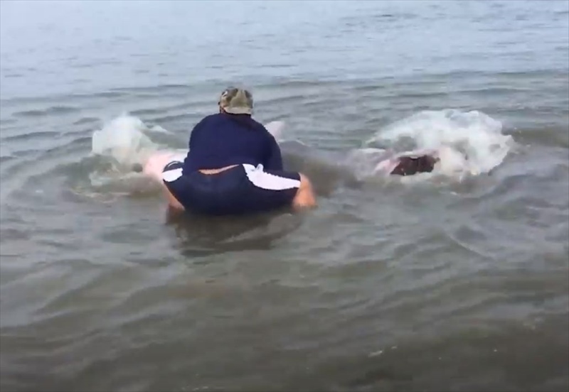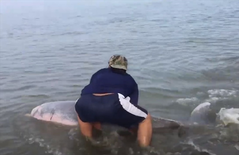 そんなイルカが浅瀬でバタバタしながら苦しそうにしている姿を発見し、すかさず救助に向かった男性の行動が話題になっているのでご紹介します!