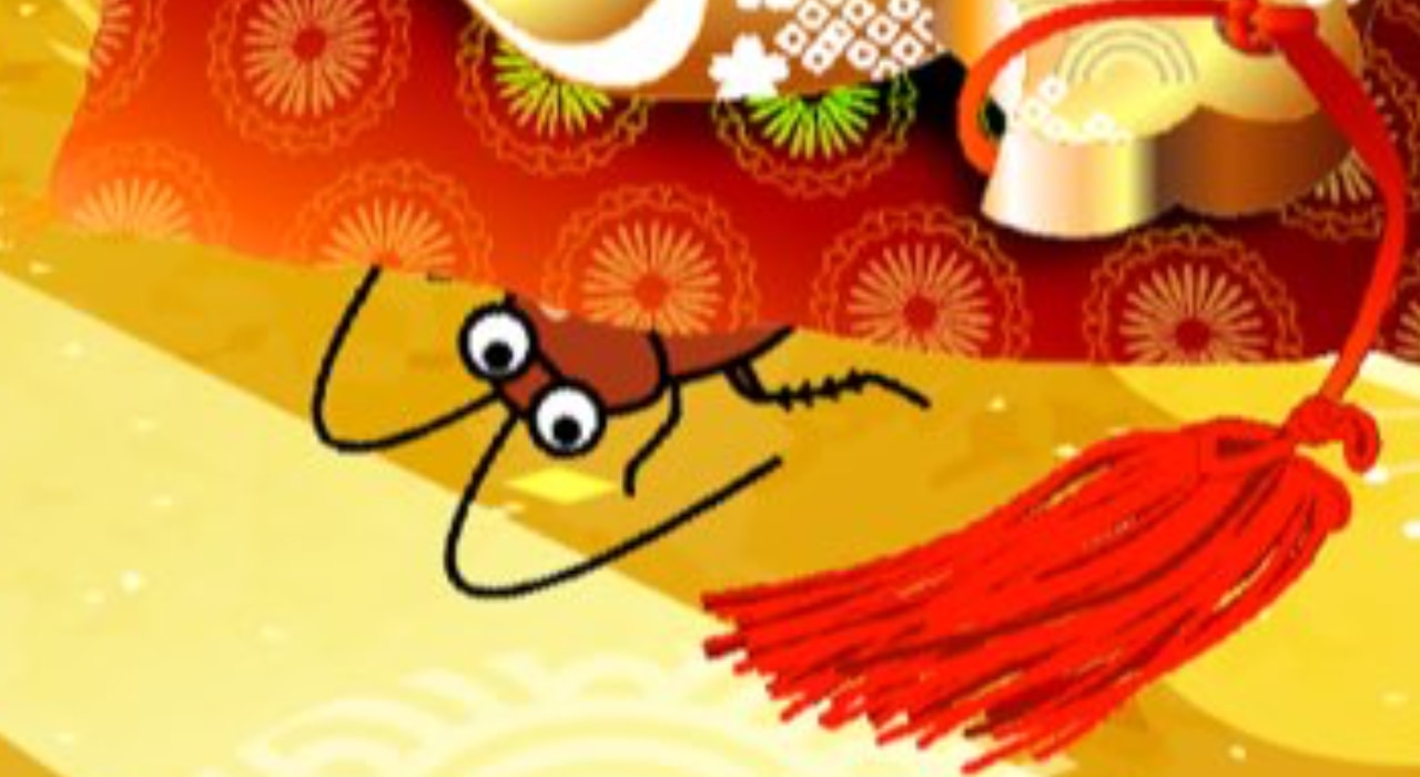 よく見ると右側の打ち出の小槌が置かれた座布団の下にヤツの姿が!