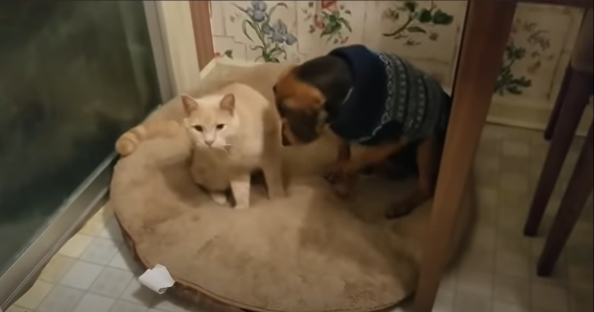出典:YouTube(Cat Comforts Blind Sick Dog – 1011784)