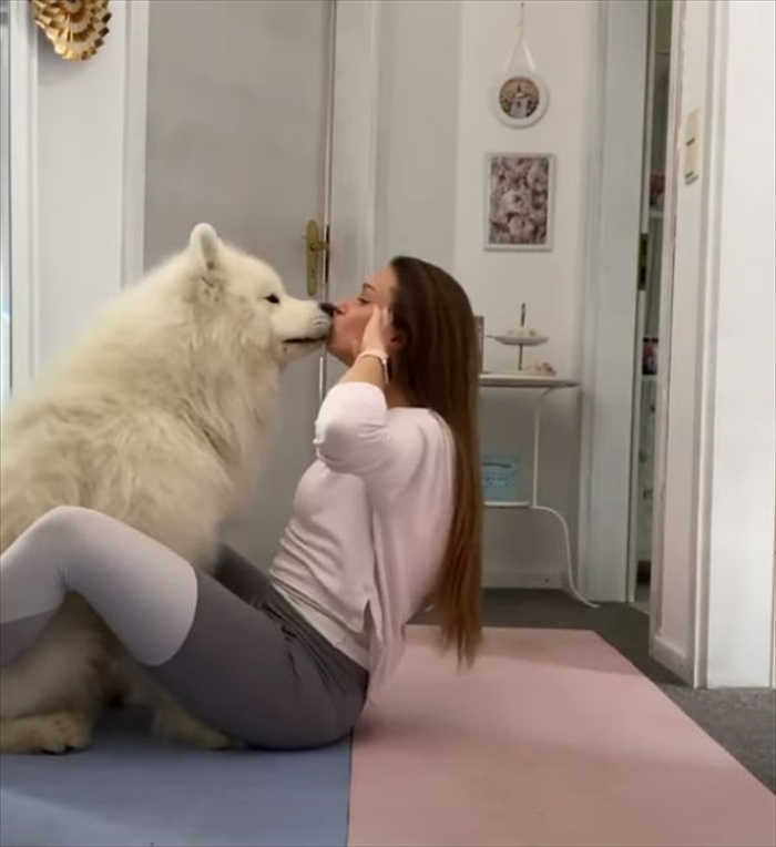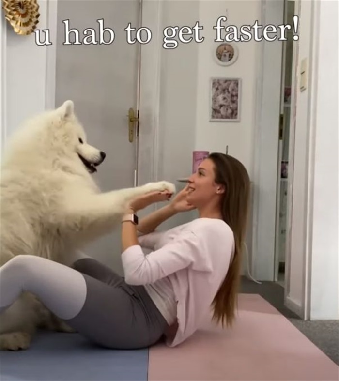 そんなサモエドが“最高のパーソナルトレーナー”であることを証明する動画が話題になっています!