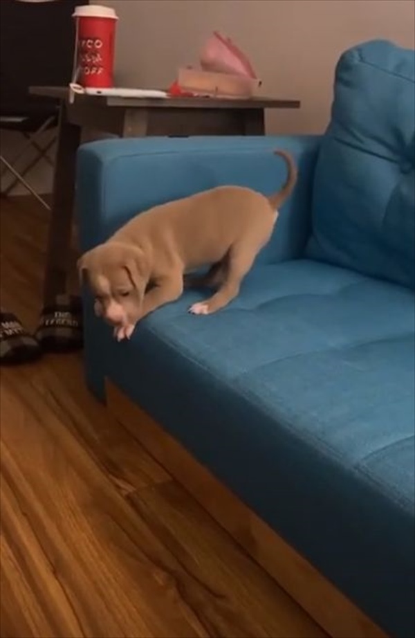 出典:YouTube(Puppy Takes His First Big Jump off The Couch)