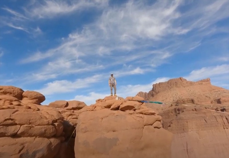 スラックラインをしているのは、米ユタ州モアブ。壮大な自然の中で様々なアクティビティが楽しめるスポットとしても知られています。