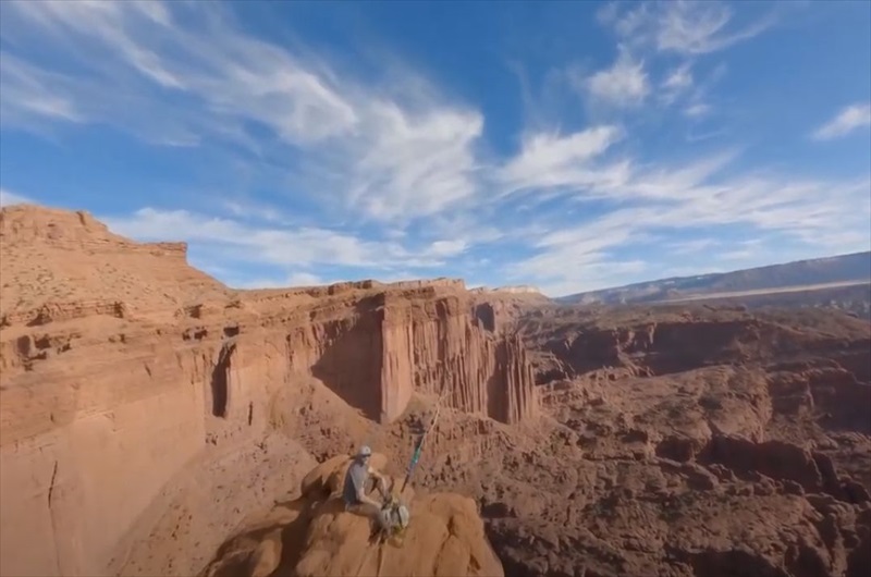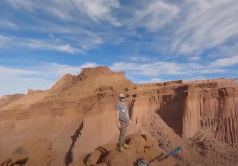 ラインを張ったのは、米屈指とも言われる高さの自然の塔。多彩な地層が織りなすダイナミックな光景には圧倒されます。